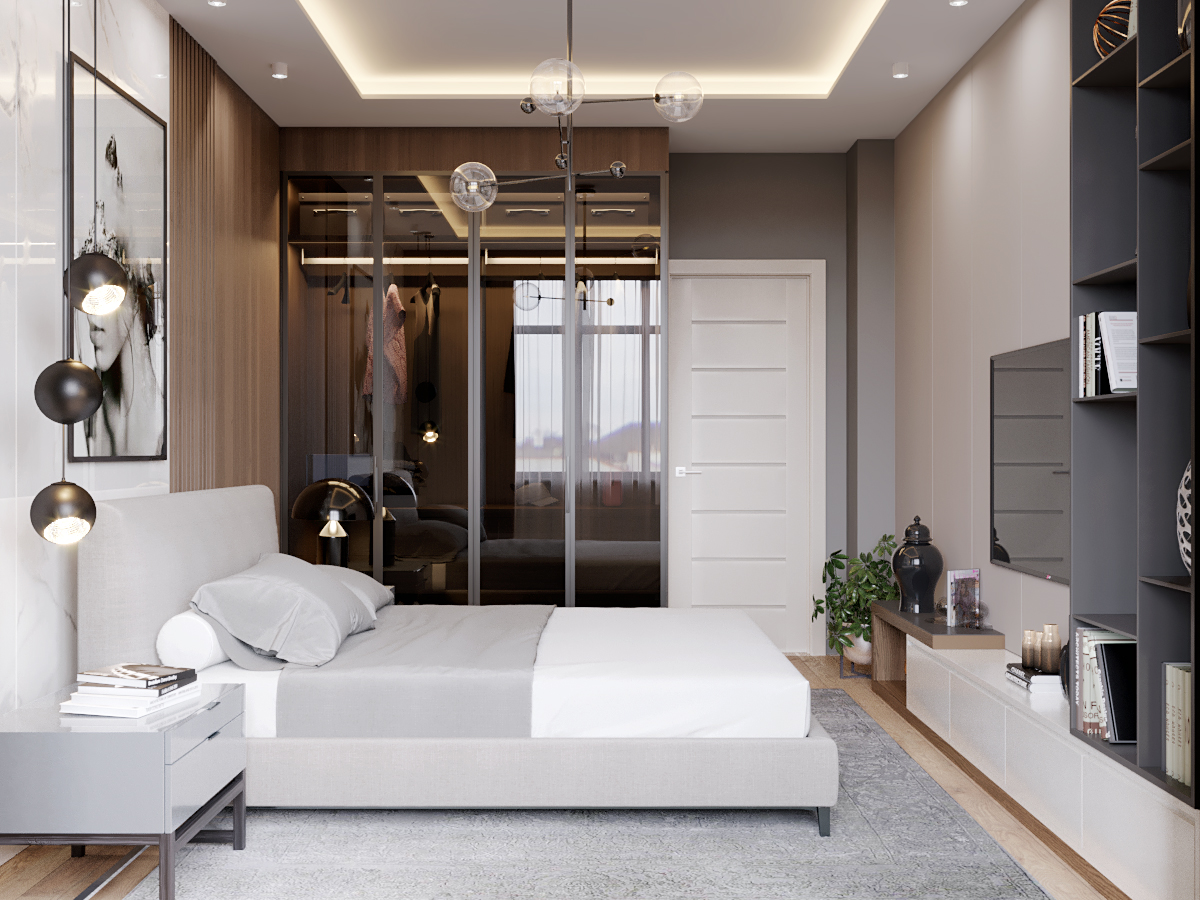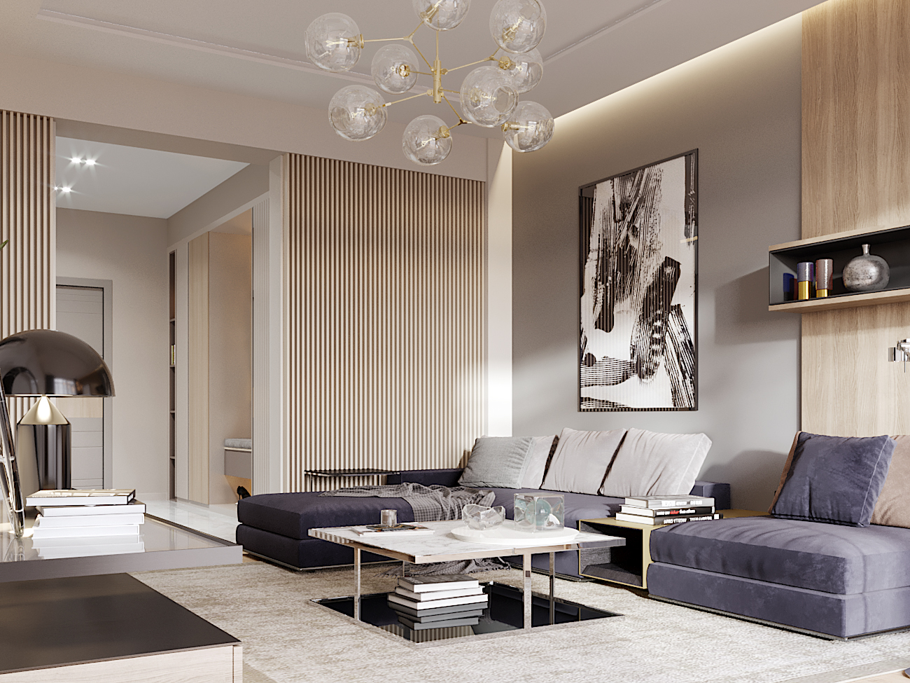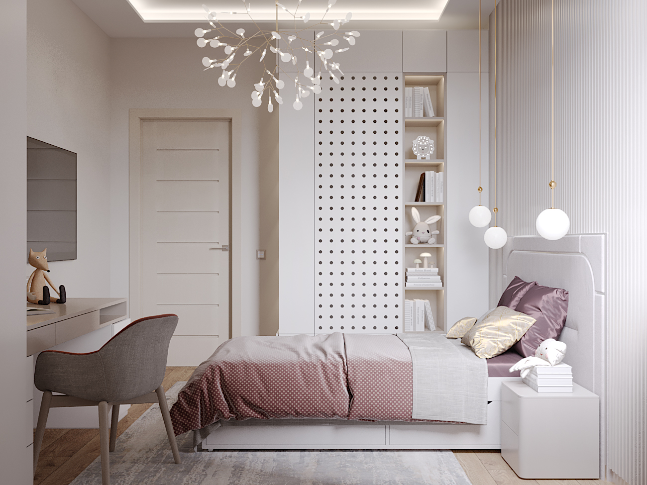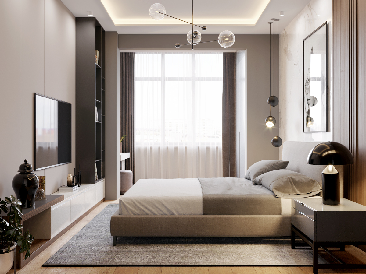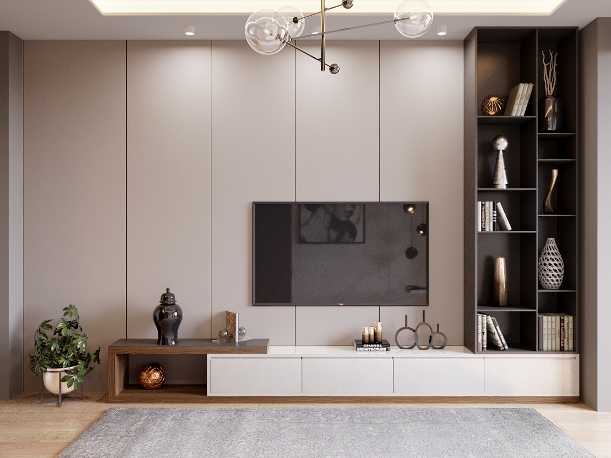 A chic, functional space crafted with soft tones and playful geometry, where modern comfort meets tailored design.