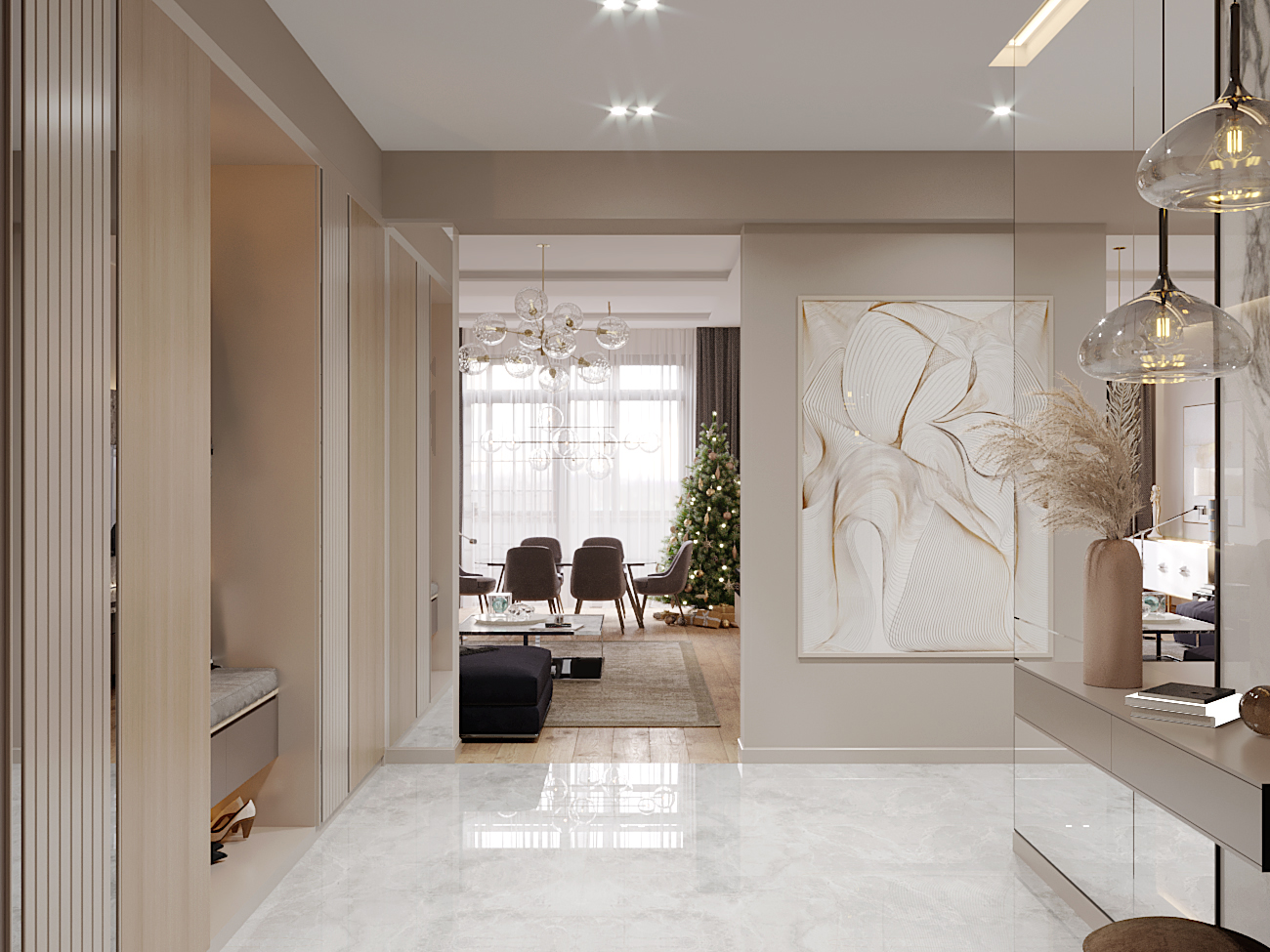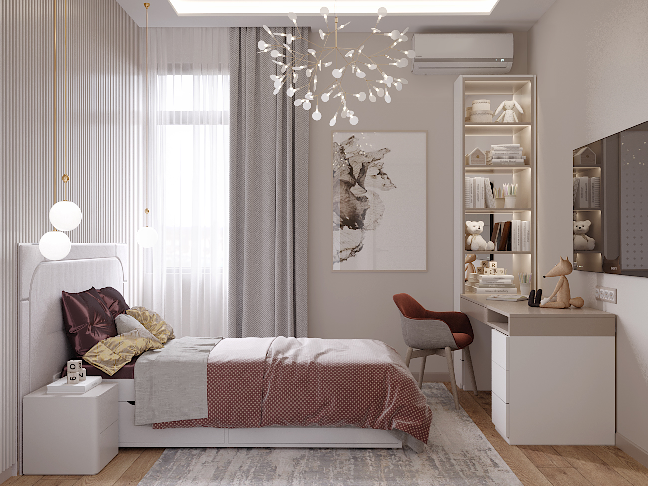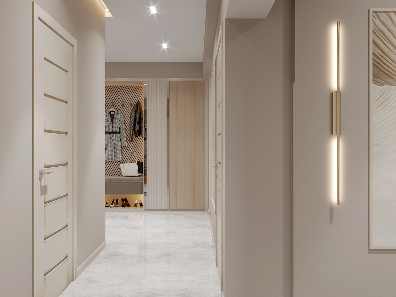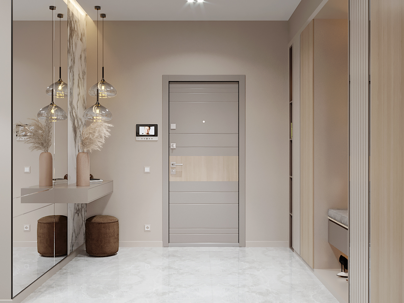A chic, functional space crafted with soft tones and playful geometry, where modern comfort meets tailored design.