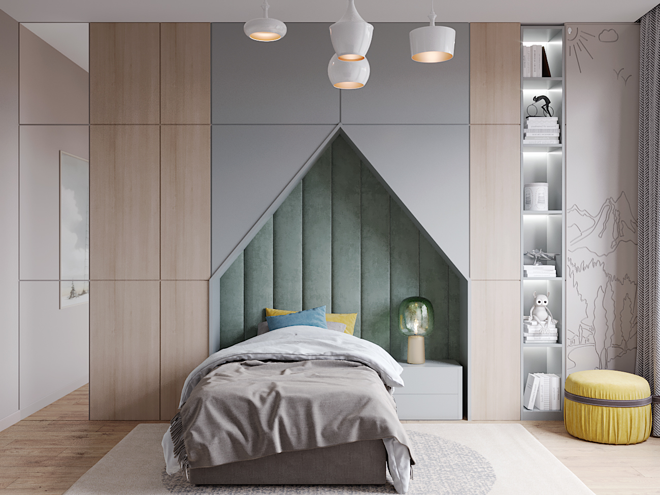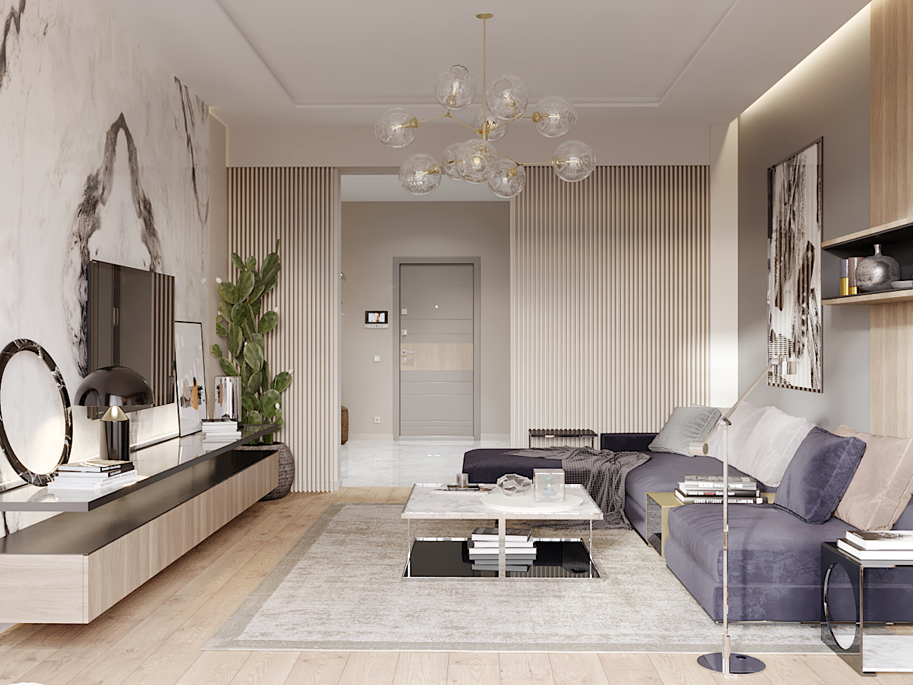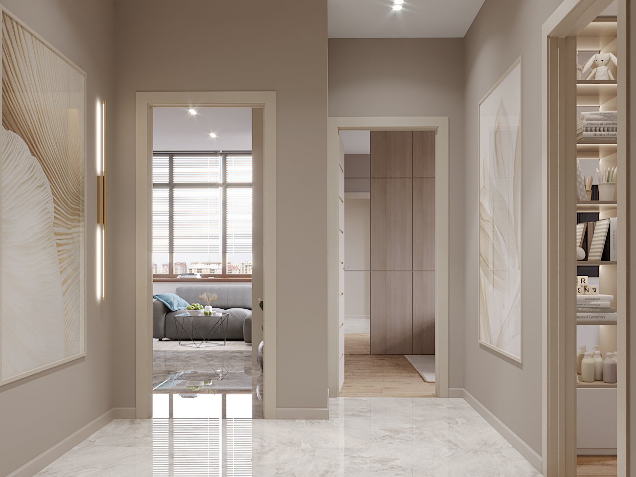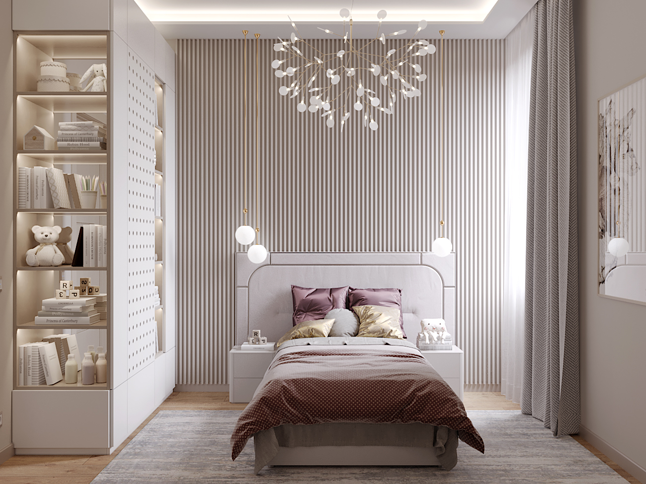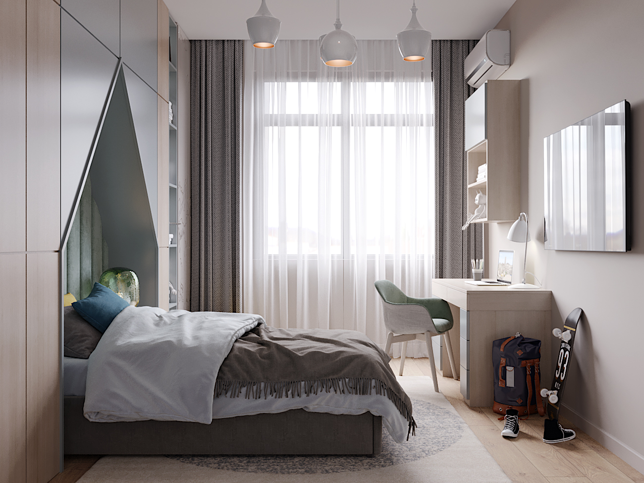 A chic, functional space crafted with soft tones and playful geometry, where modern comfort meets tailored design.
